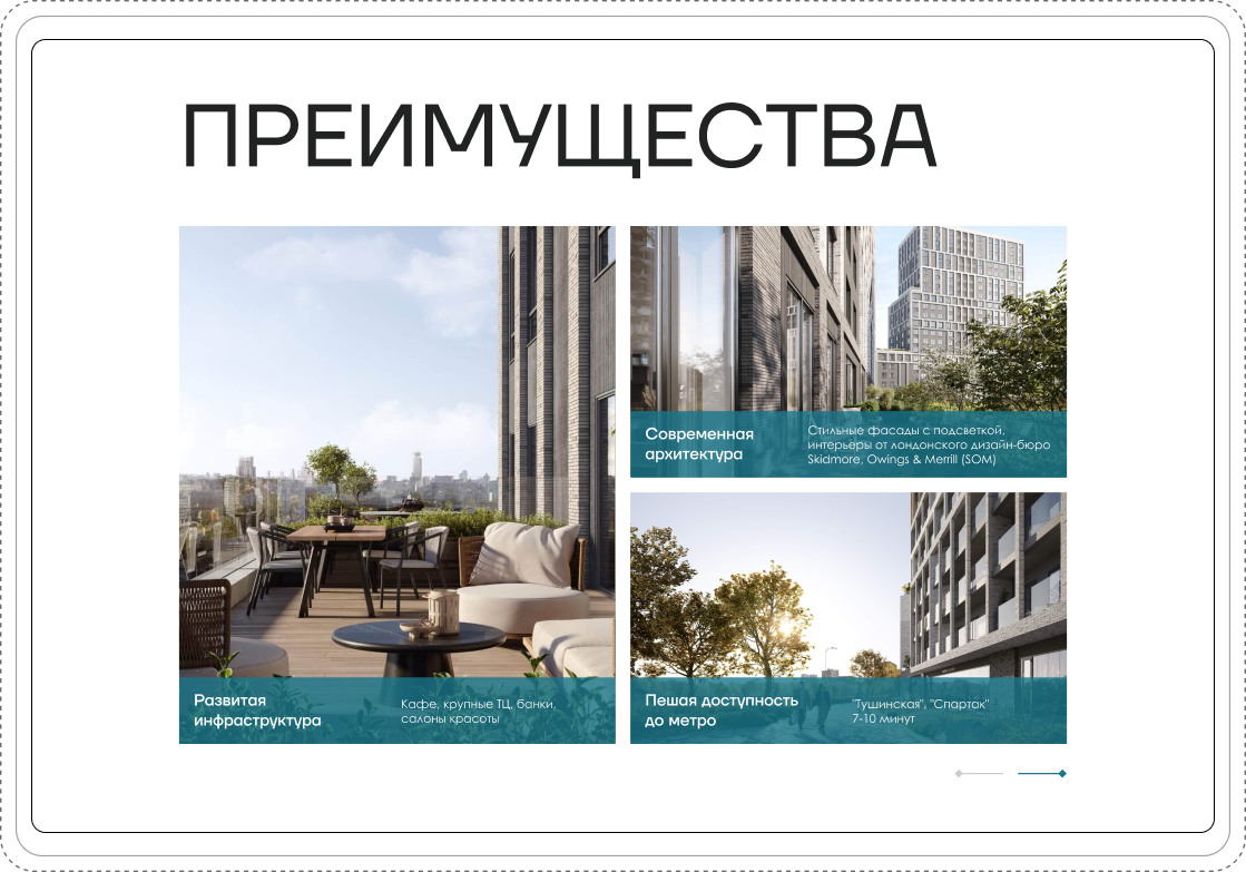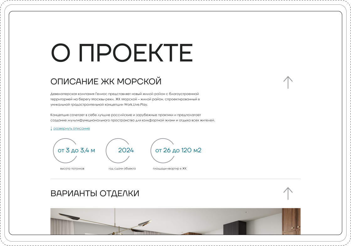 Перед командой BrandTec стояла задача – разработать многостраничный сайт, агрегирующий и опыт компании, и все представленные ей объекты недвижимости. При это важно было отразить премиальное позиционирование и отстроиться от привычного стандарта агентств недвижимости и развернуть коммуникацию бренда через сайт с точки зрения запросов потенциальных клиентов и партнёров