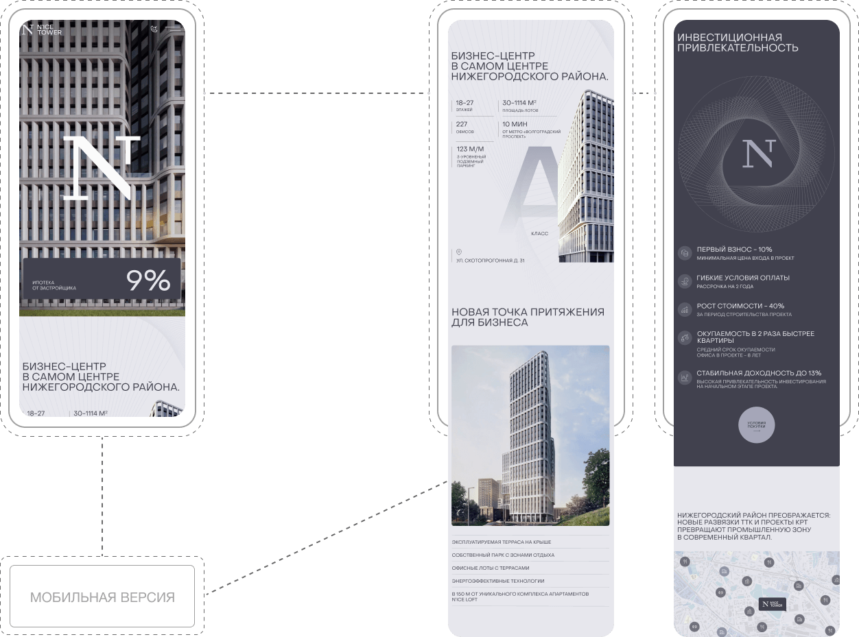 Для сайта была разработана концепция, которая передаст гармонию современного стиля и технологичности. Использовали светлые тона, оттенки серого и зелёного для передачи атмосферы урбанистического уюта. Интерактивные элементы сайта подчёркивают эксклюзивность комплекса.